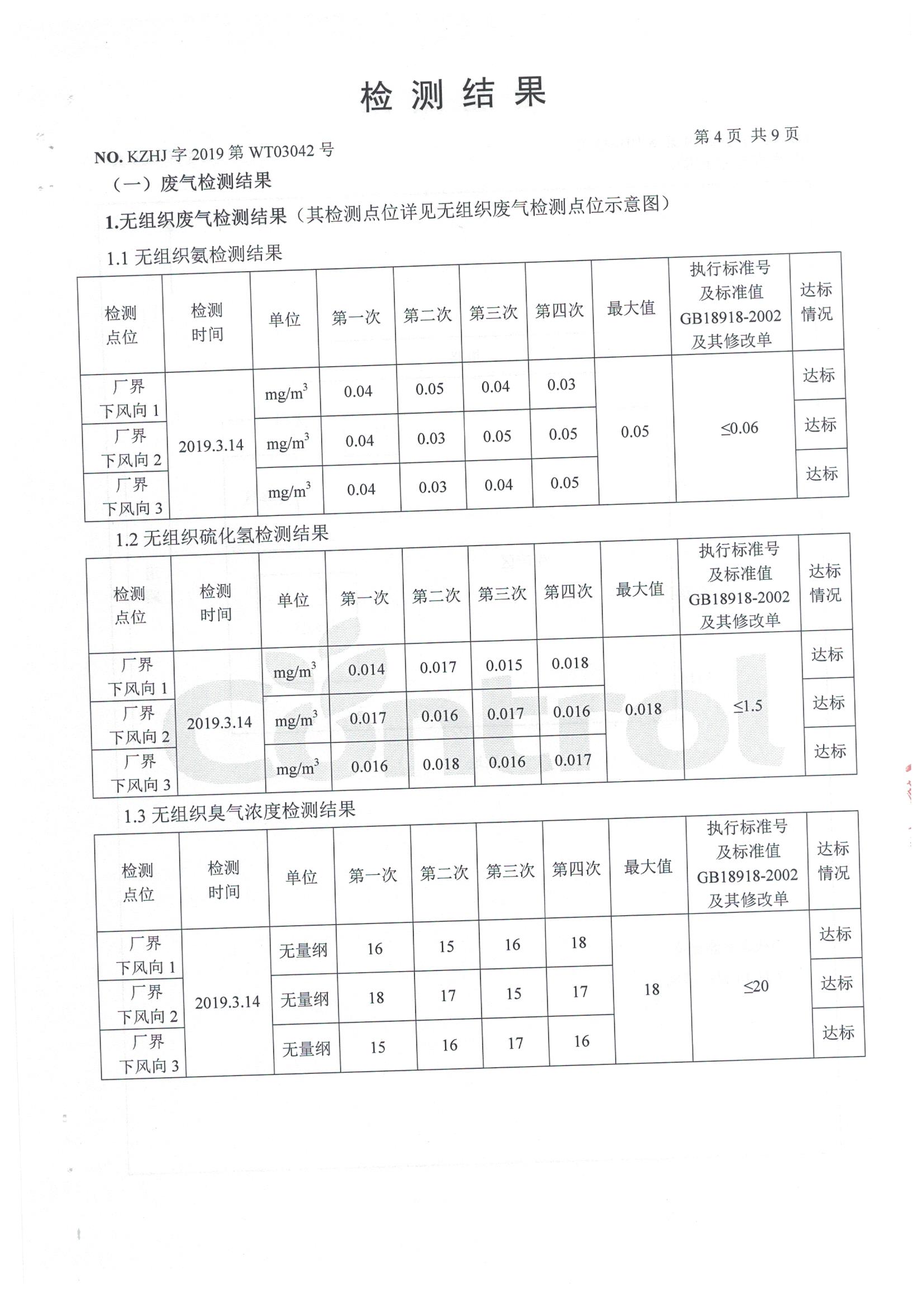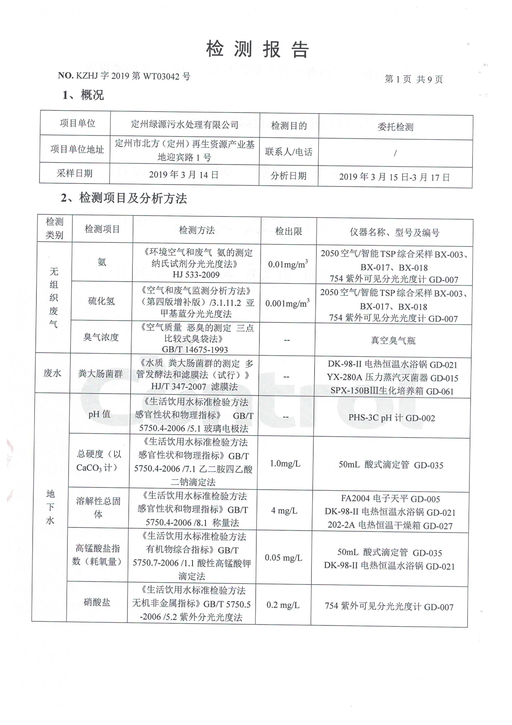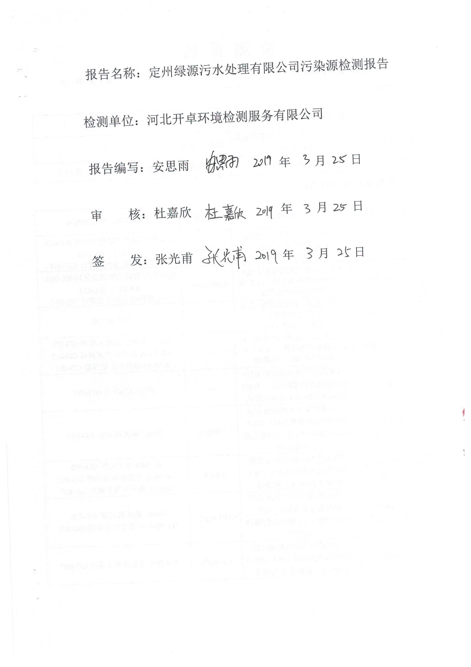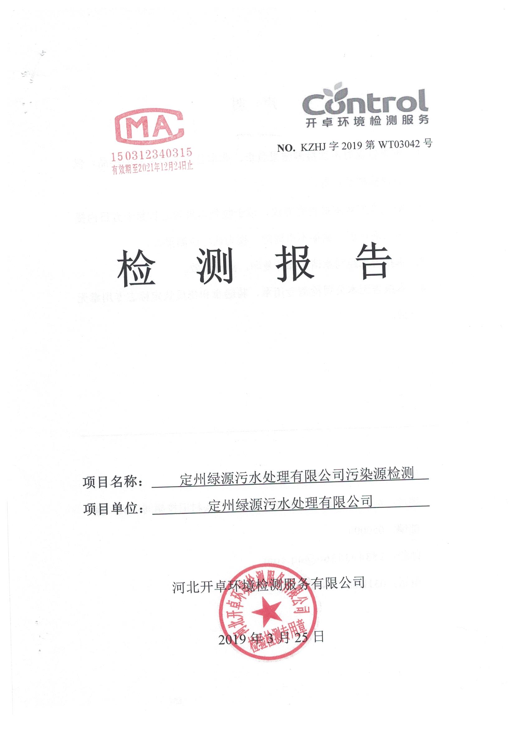 定州綠源污水處理有限公司委托有資質(zhì)的檢驗監(jiān)測機構(gòu)監(jiān)測并出具監(jiān)測報告,每季度監(jiān)測一次,一年監(jiān)測4次。